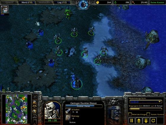 С появлением героя, у нас две возможности. Мы можем подбежать к врагу и с помощью хараса мешать ему крипиться. Или же мы можем сами пойти покрипить мелкие точки - так Дарк Ренджерка быстрей получит второй уровень и соответственно спел Черная стрела. Таким образом, наша армия усиливается скилетами, которых Дарка вызывает из юнитов убитых Черной стрелой. Возможно, что ваша база подвергнется атаки. Тогда возможно использование свитка портала и вы сможете с легкостью прогнать противника.