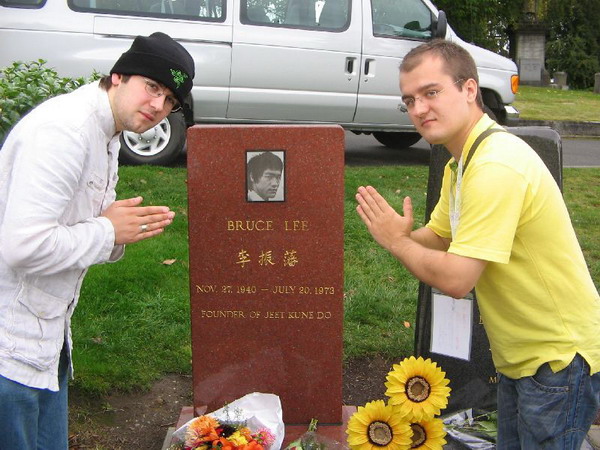 5 дней турнира и сопутствующий ему график съемок (читай от зари до зари) почти не оставлял времени на туристические празношатания. А познакомиться с Сиэтлом поближе ой как хотелось. В результате, остановились на экспресс варианте. Знакомый таксист Дэниэл живо отреагировал на кинутое нами по-русски "гони!" и утром воскресного дня покатил журналистов экскурсионным автопробегом по главным достопримечательностям столицы WCG. Первый пункт маршрута - клочок земли, где бок о бок нашли последний приют знаменитый актер Брюс Ли и недолго следовавший по стопам звездного отца Брэндон Ли. К двум окраинным, ничем не примечательным надгробьям на городском кладбище ежедневно несут живые цветы. Значит, помнят.
